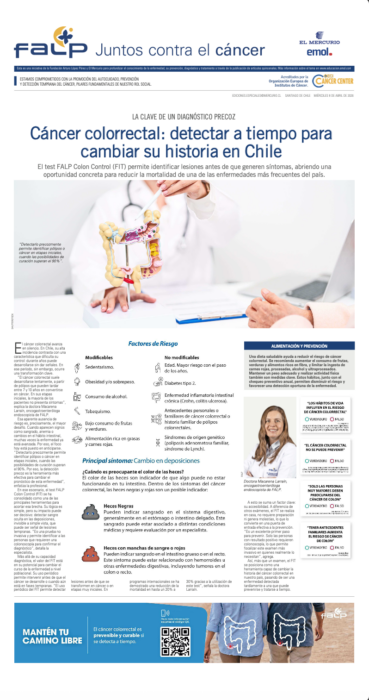 Así, más que un examen, el FIT se posiciona como una herramienta capaz de cambiar la historia del cáncer colorrectal en nuestro país, pasando de ser una enfermedad detectada tardíamente a una que puede prevenirse y tratarse a tiempo.