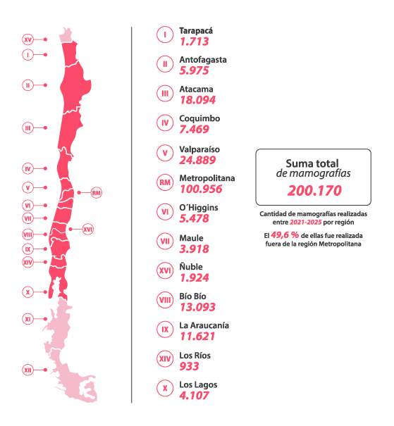El impacto de este trabajo se traduce en resultados concretos: más de 30 mil mujeres beneficiadas solo en el último año, con alrededor de 350 resultados alterados que activaron rutas de diagnóstico oportuno. “Eso significa que 350 mujeres pudieron ingresar a la ruta de sospecha y acceder a las prestaciones que garantiza el sistema GES”, explica el Dr. Bernucci.