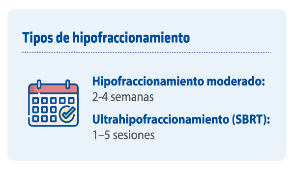 Actualmente, el hipofraccionamiento se emplea principalmente en cáncer de mama, especialmente tras cirugías conservadoras, y en el cáncer de próstata reemplazando o complementando a la cirugía.