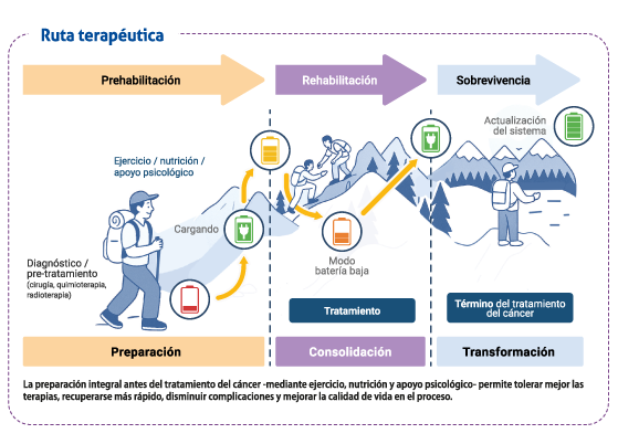 Durante las semanas previas al tratamiento, ambos equipos realizan un seguimiento constante, ajustando la dieta y el programa de movilidad según la evolución de la persona, mejorando la percepción de fatiga, la calidad de la masa muscular y fortaleciendo la resiliencia física y mental, con el objetivo de optimizar la tolerancia al tratamiento y acelerar la recuperación.